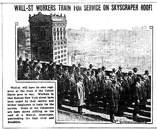 This photo shows Wall Street workers training on a skyscraper roof in April 1917.