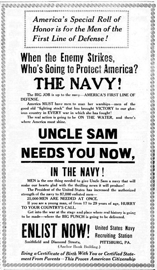 An ad for the Navy in April 1917.