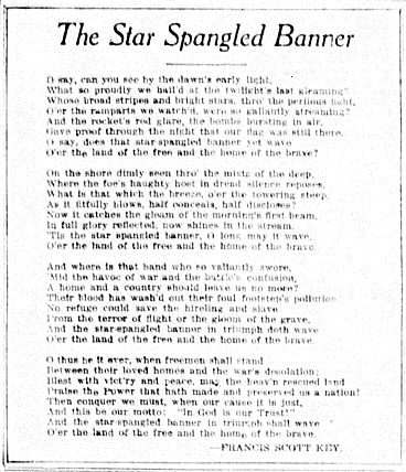 The Star Spangled Banner was printed in the Washington Observer. We assume it was placed as a show of patriotism.
