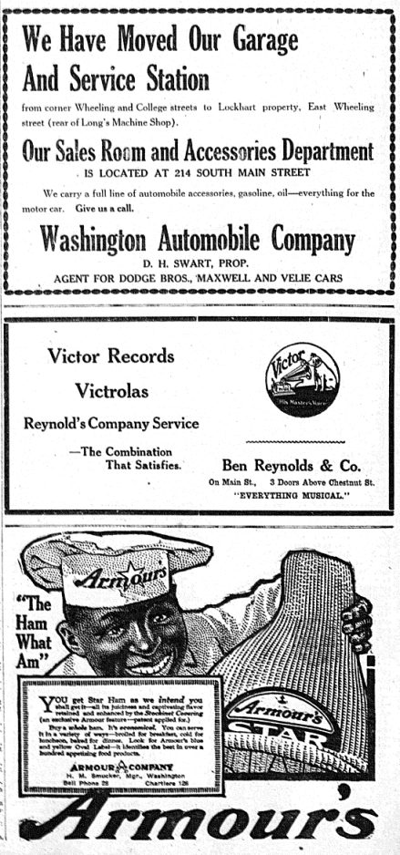 A series of ads displayed in the Washington Reporter in April 1917.