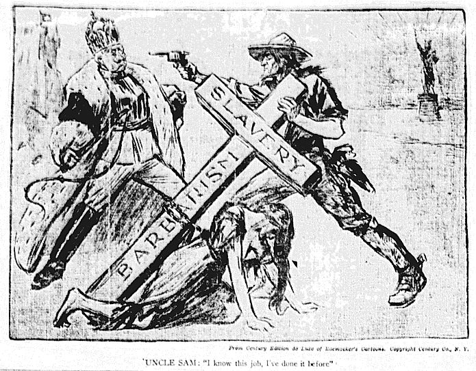 This editorial cartoon appeared in the April 6, 1917 Washington Observer.