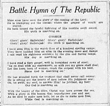 The Battle Hymn of the Republic was printed in the Washington Reporter. We assume it was placed as a show of patriotism.