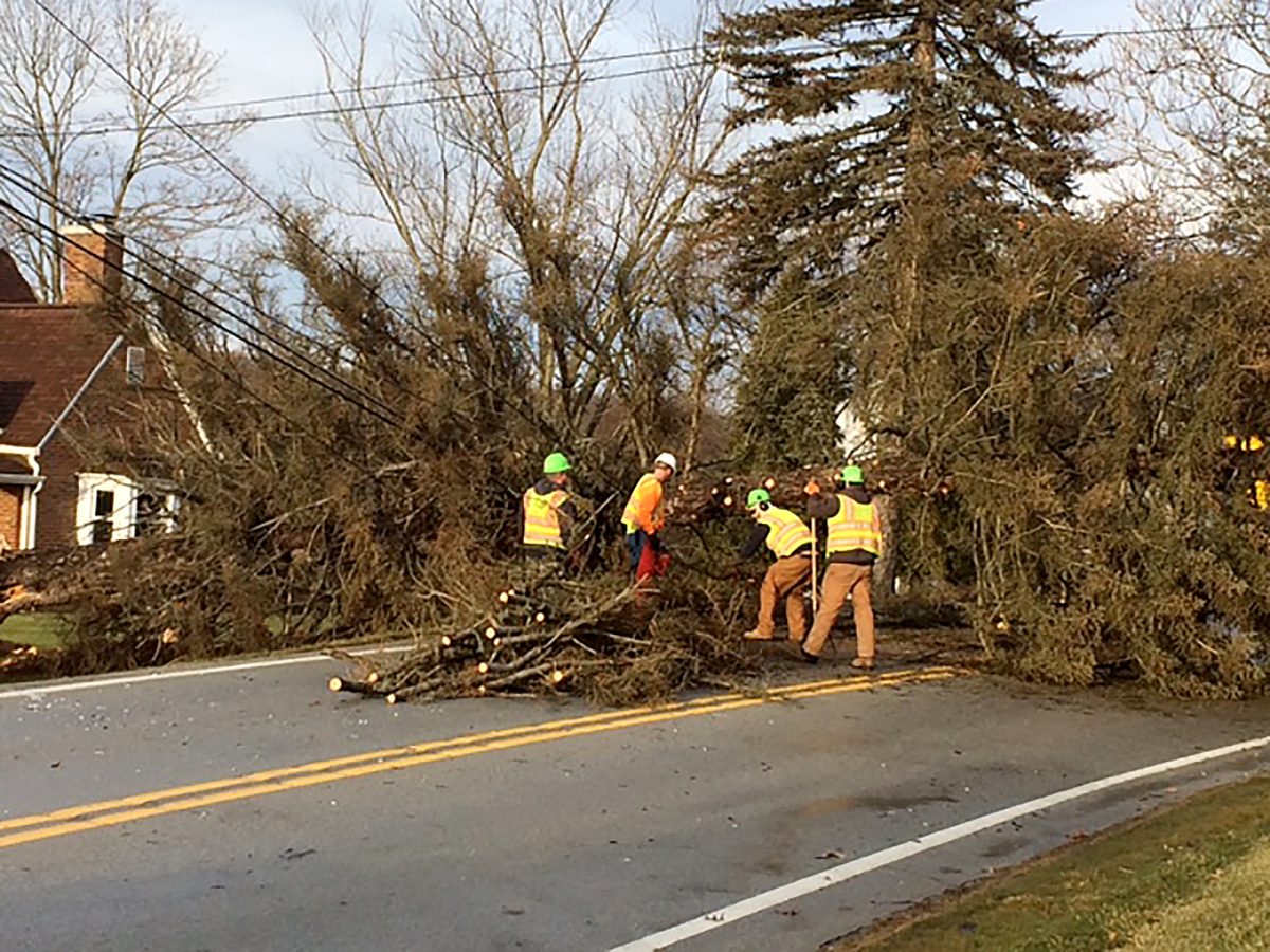 Strong winds that swept through the area late Tuesday downed trees and caused power outages throughout Washington and Greene counties.