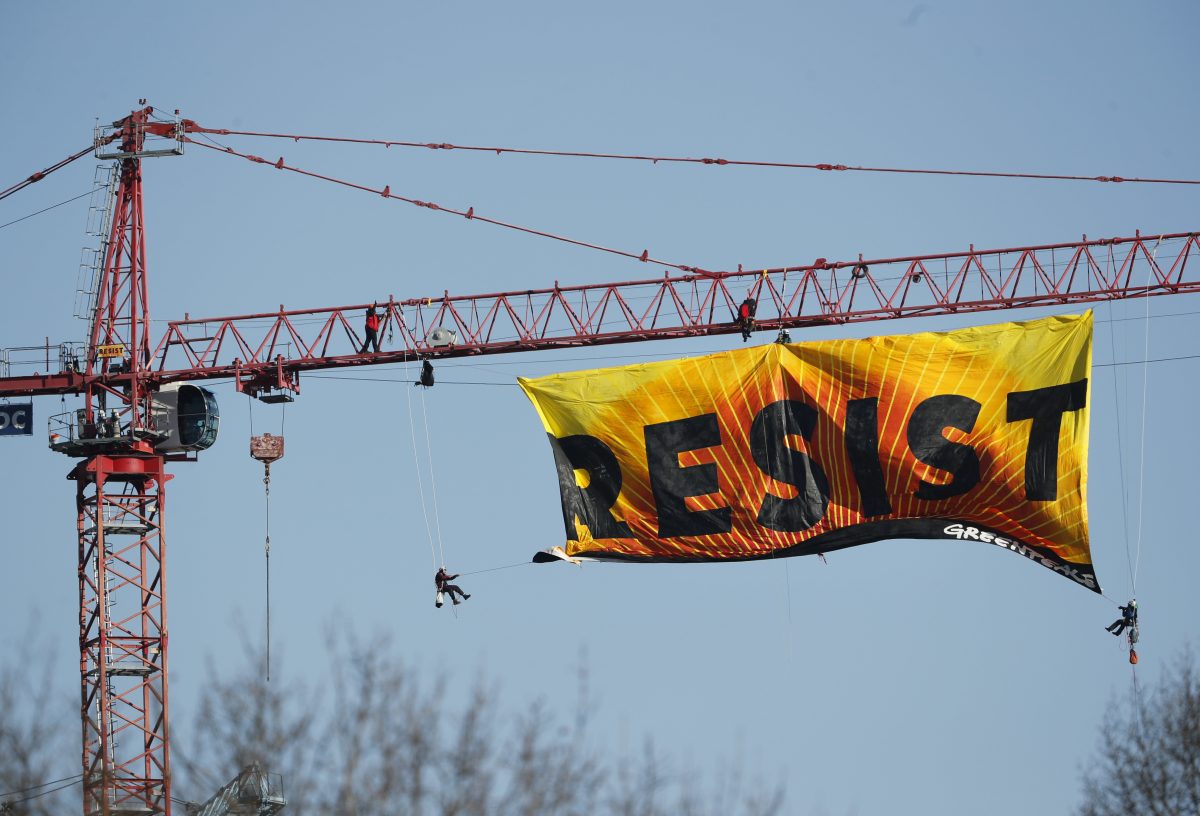 Protesters charged after flying ‘RESIST’ banner from crane