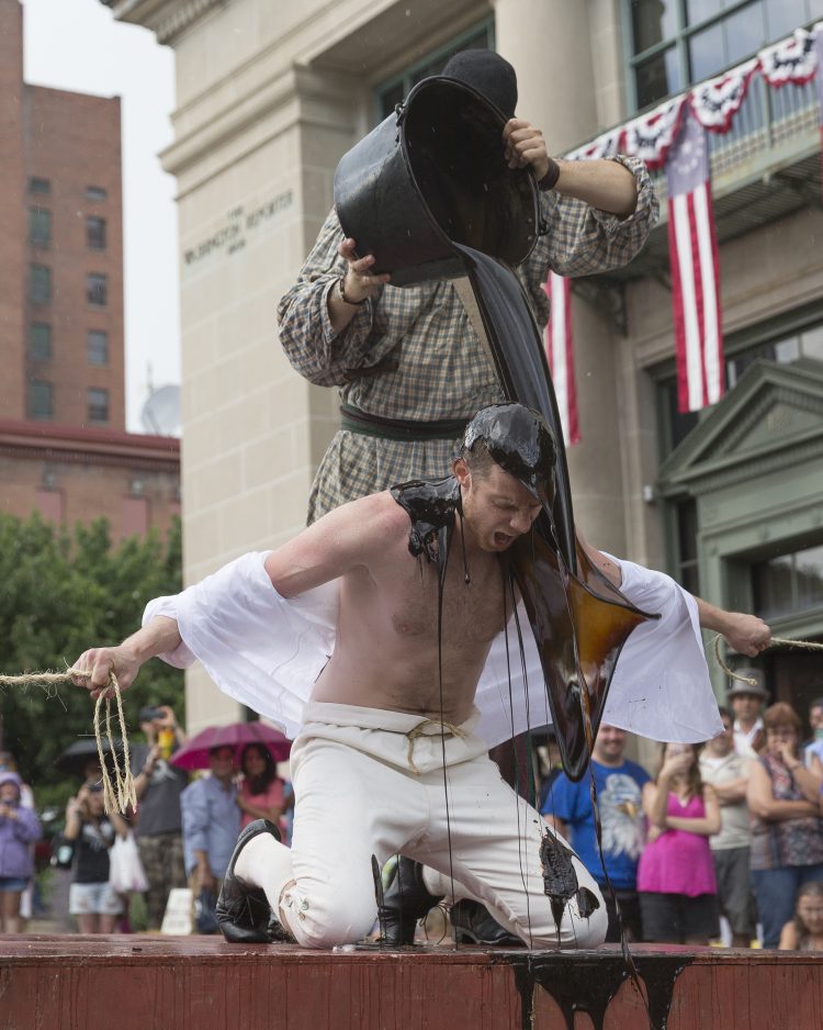 The four-day festival, which is in its seventh year, pays tribute to local heritage through live music, architectural tours, food, spirits and historic re-enactments, with the most popular among them being the tar-and-feathering of a whiskey tax collector.
