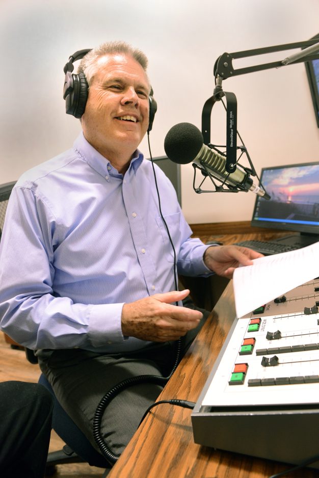 As Jim Rhone the high schooler, he contributed scholastic sports reports Friday nights at WESB. “I liked it, and they said, ‘If you want to come back during the summer, you can fill in.’ So I did for four years.”