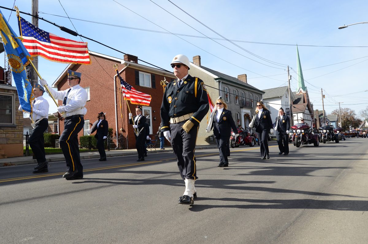 American Legion members march in the Veterans Day parade in Monongahela.