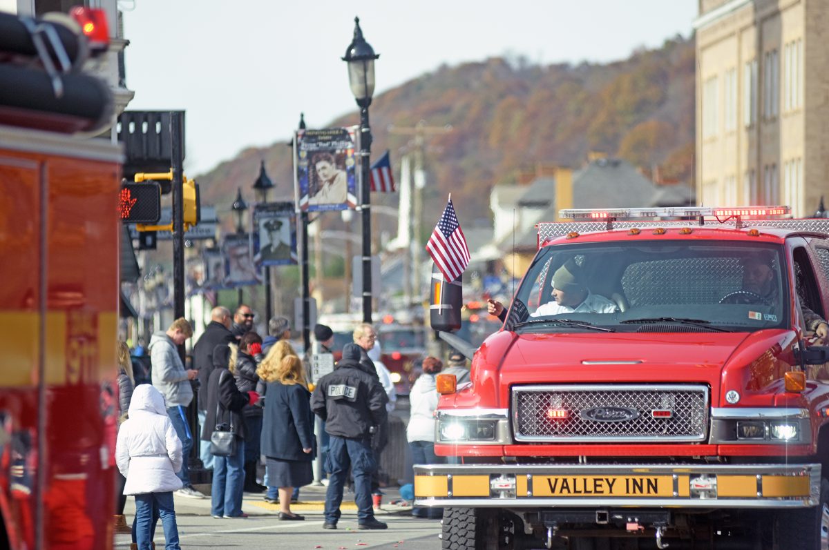 Emergency vehicles make their way along the parade route in Monongahela during the Veterans Day parade.