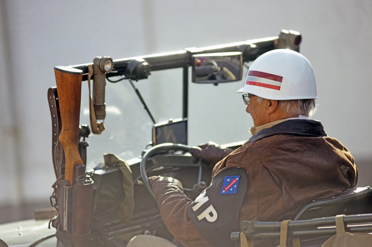An MP vehicle passes during the Veterans Day parade in Monongahela.
