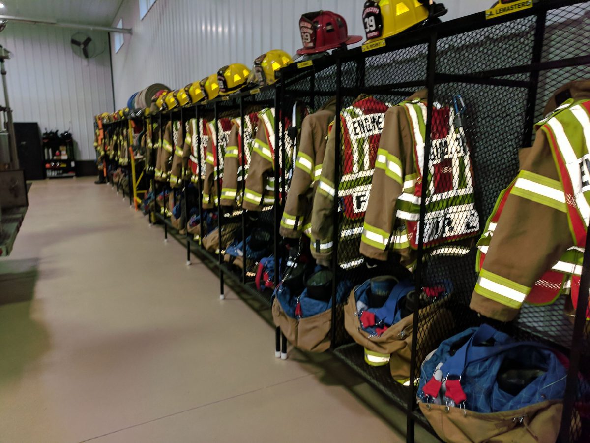 Bunker gear hangs in the new West Alexander VFC station.