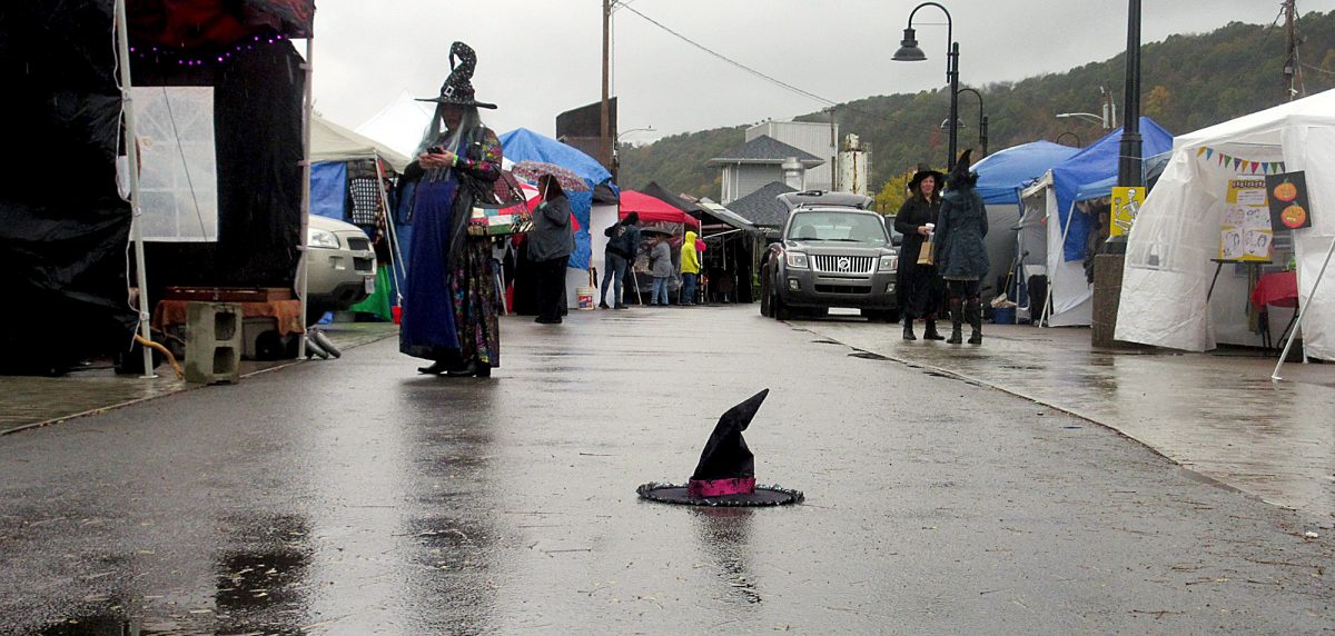 A witch either melted from the rain, leaving only her hat in the street, or the wind blew the hat from her head Saturday afternoon during the second annual Witch Festival in Monongahela.