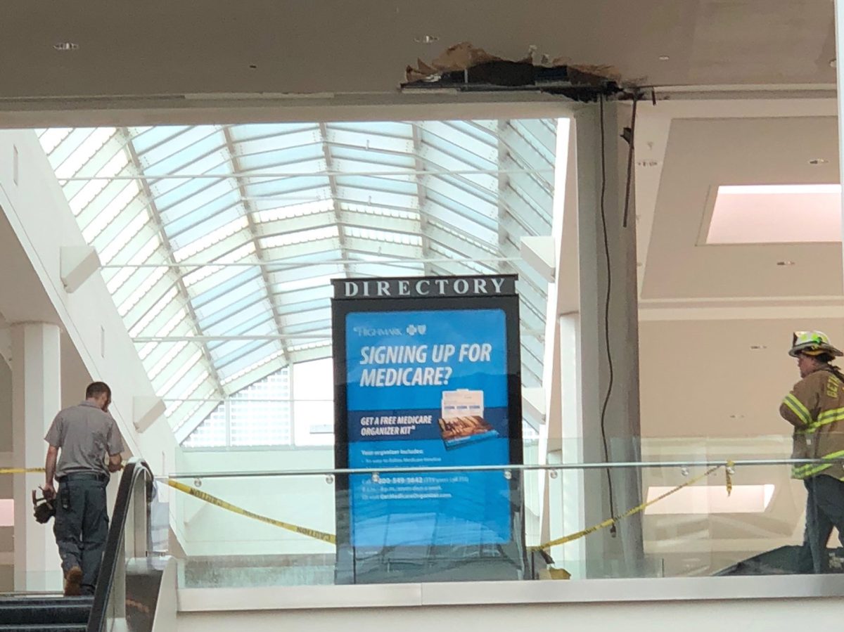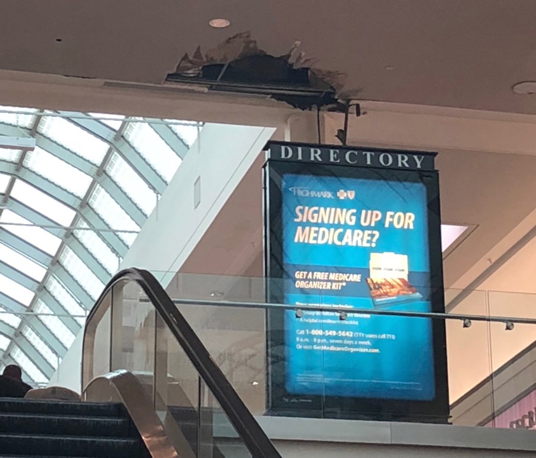 Police said the mall was not evacuated, but the area was cordoned off while Bethel Park firefighters investigated. Workers could be seen trying to cleaning up pools of water from the first floor below.