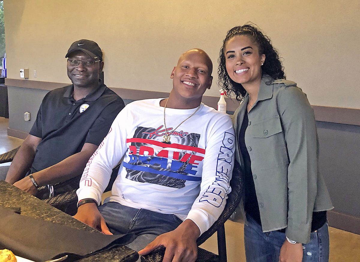 Pittsburgh Steelers linebacker Ryan Shazier, middle, attended the Topgolf preview event July 11 with his father, Vernon, and his fiancée, Michelle.