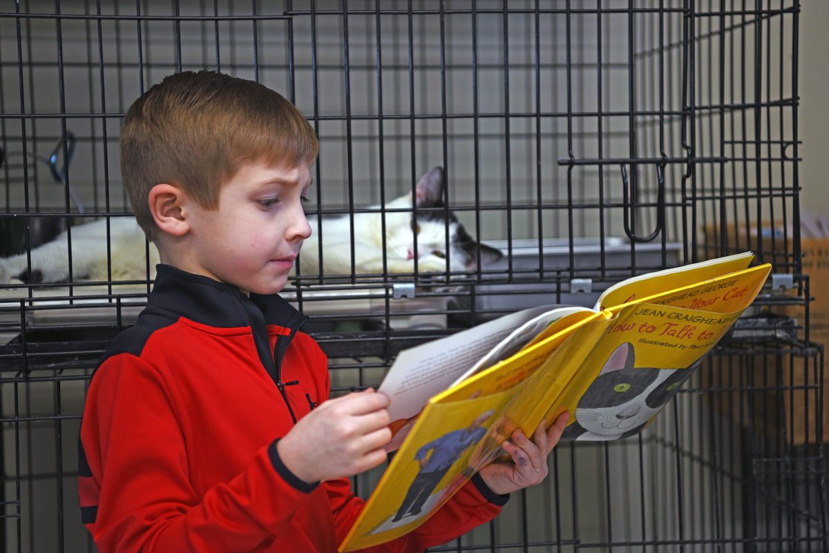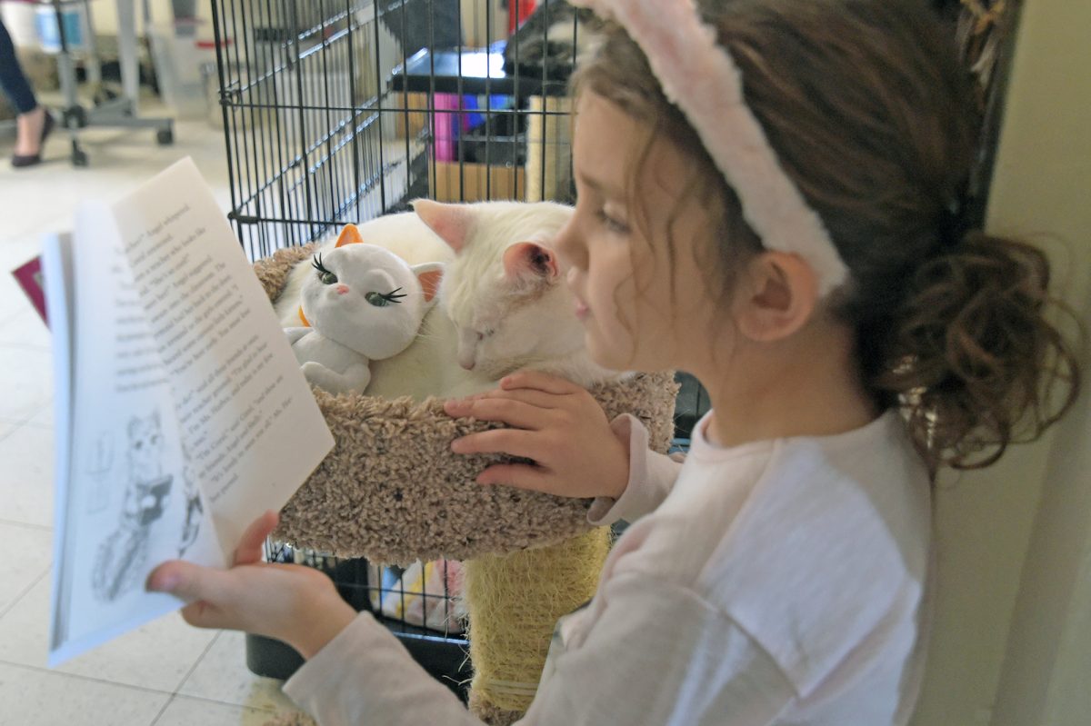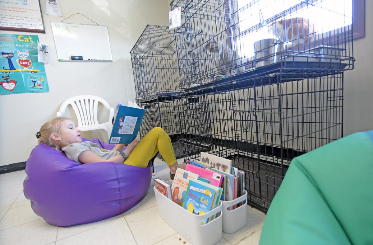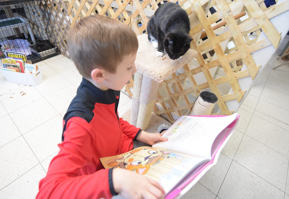 “It gives the child a chance to work on their reading skills and learn about the animals,” Proudfit said. “And being around the kids helps socialize the cats (to) help get them adopted.”