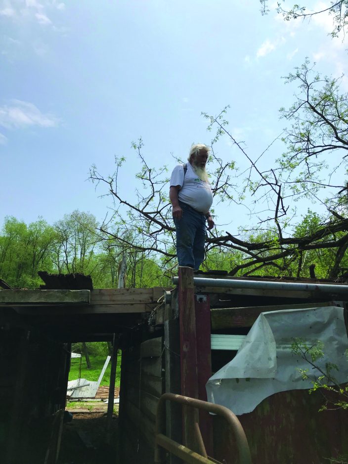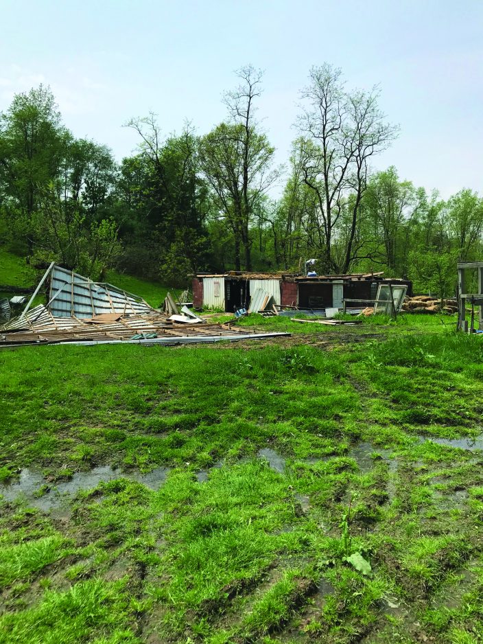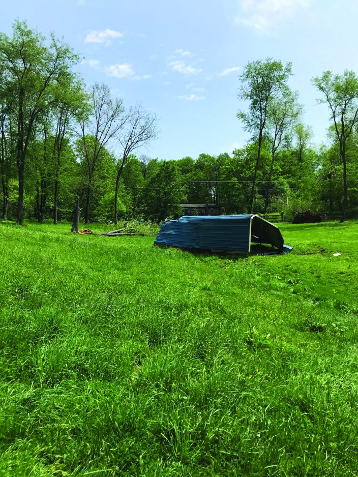 The roof was torn off a barn belonging to Bob Leroch, who lives on Valley View Road in Eighty Four. The storm also lifted up a carport that had been in his driveway and slung it to the other side of his property, and knocked down about 25 trees.