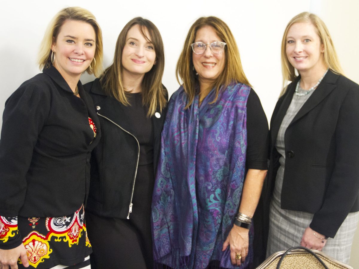 Mandi Pryor, left, executive director of the South West Communities Chamber of Commerce, greets Erica Peterson, Audrey Russo and Amy Halter.