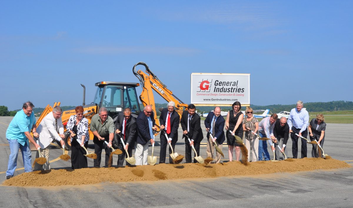 Various dignitaries broke ground on a new T-hangar at the Greene County Airport near Waynesburg in August 2013.
