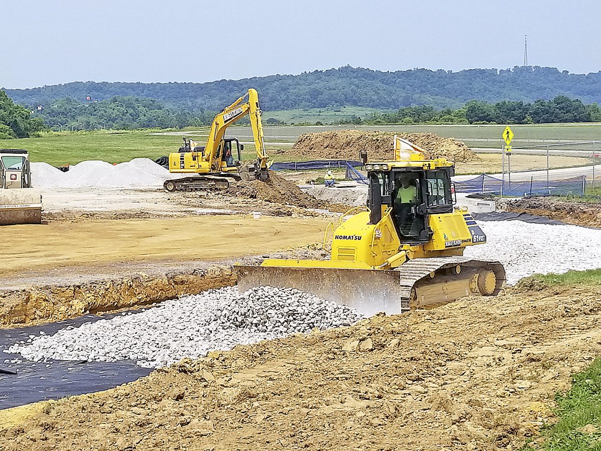 Construction crews work to build a new access road to the Greene County Airport in June.