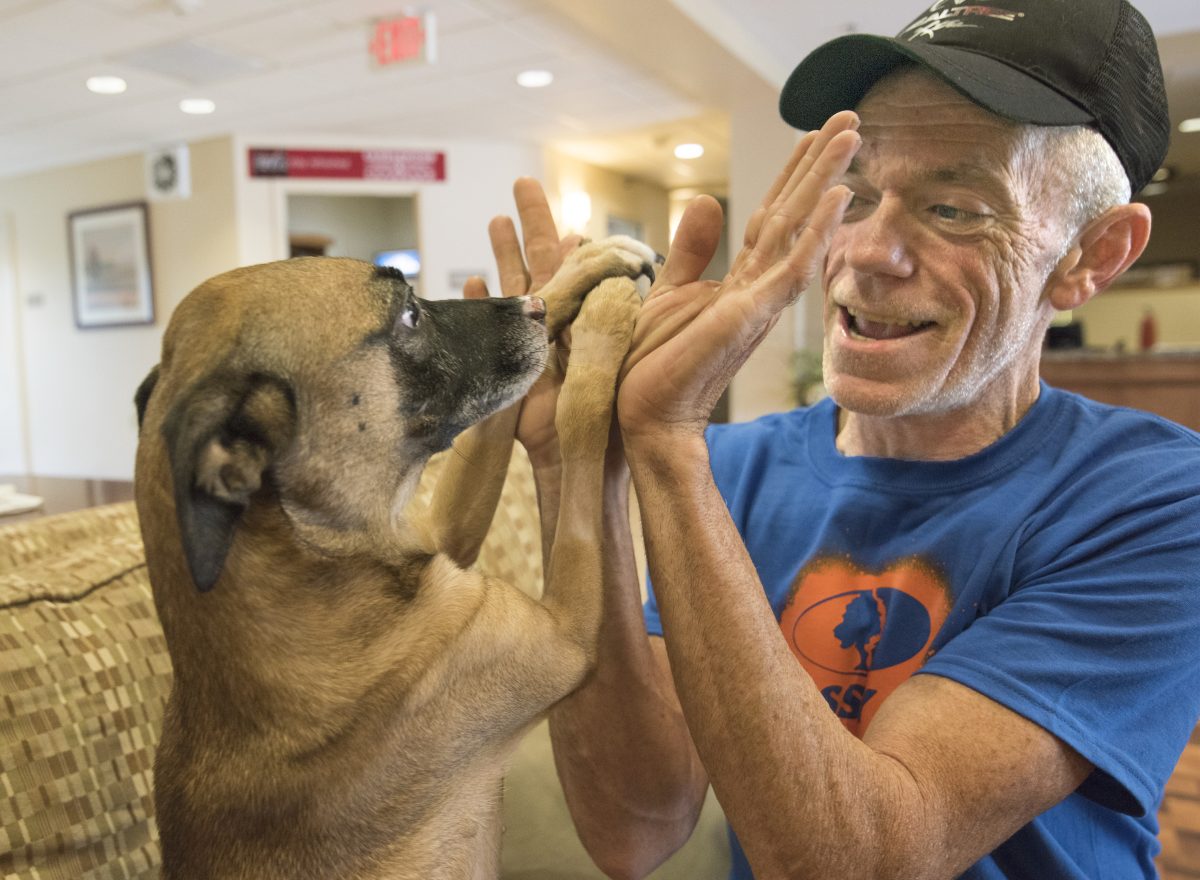 Cindy Lou gives her owner, Marty Goodrich, a high five Tuesday.