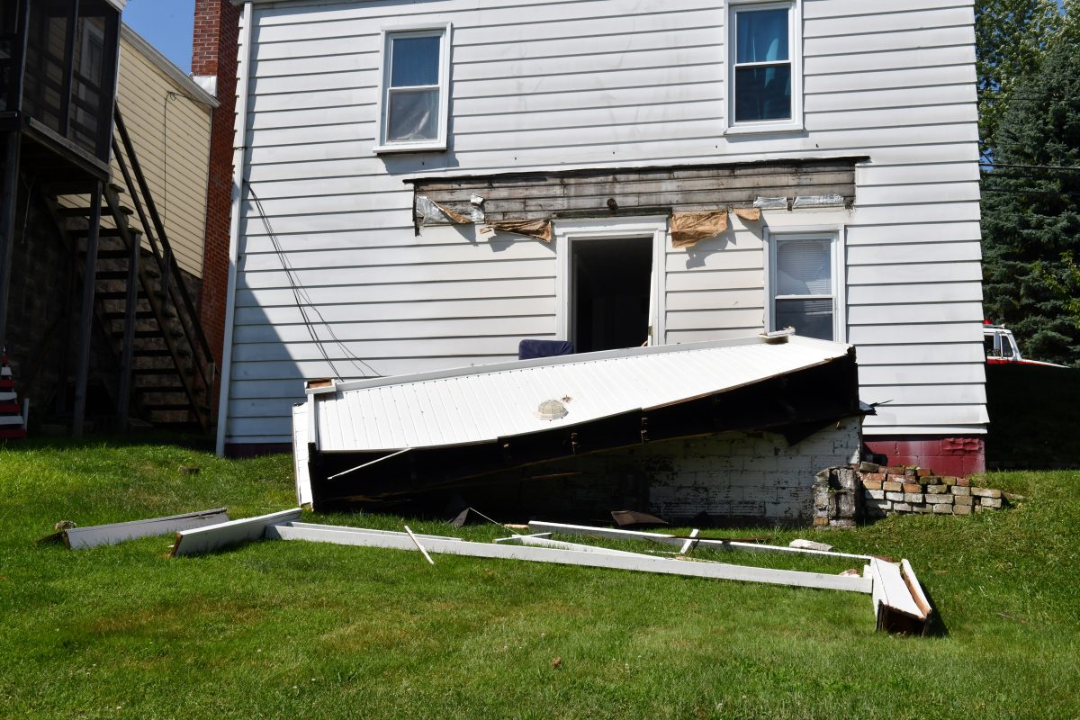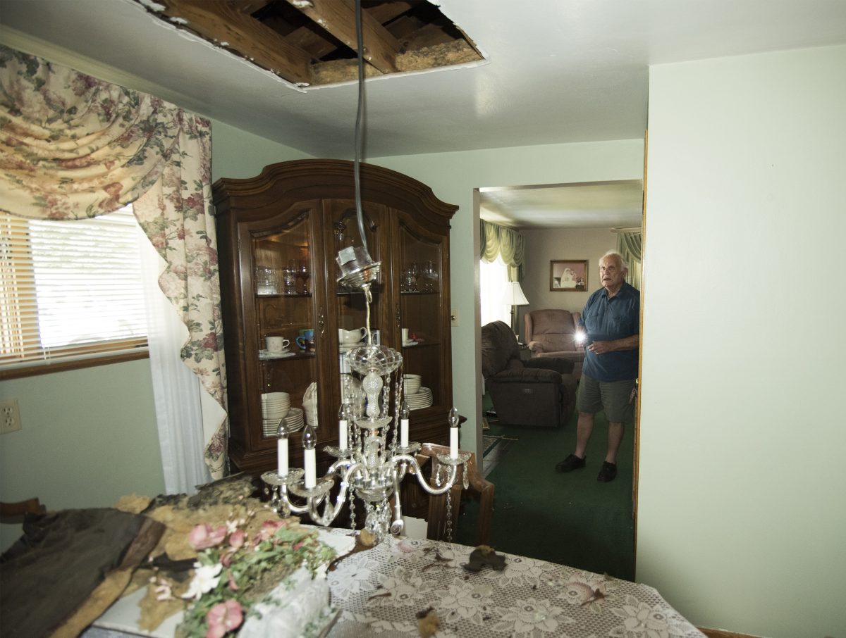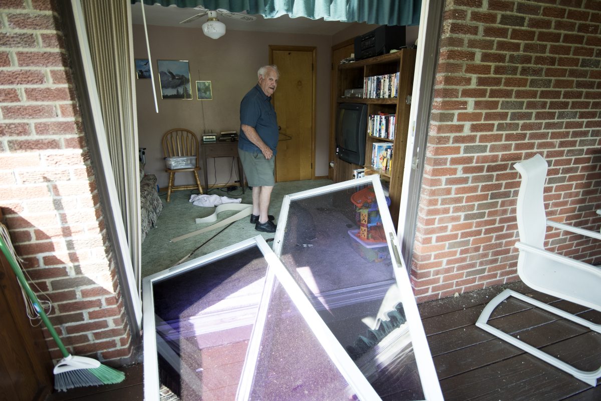 It shattered windows, knocking a door to a deck out of its frame and yanking down a chandelier, along with other parts of their ceiling. It also left a crack in an outer wall and caved in part of the roof.