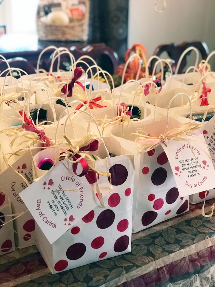 For the Circle of Friends Day of Caring, the women – Sutton, Phillipi, Susan Vulcano, Marge Kesneck, Chrissa Johnson and Kathy Belfiore – organized a clothing and supply drive for Domestic Violence of Southwestern Pennsylvania. They assembled bags filled with necessities and delivered them.