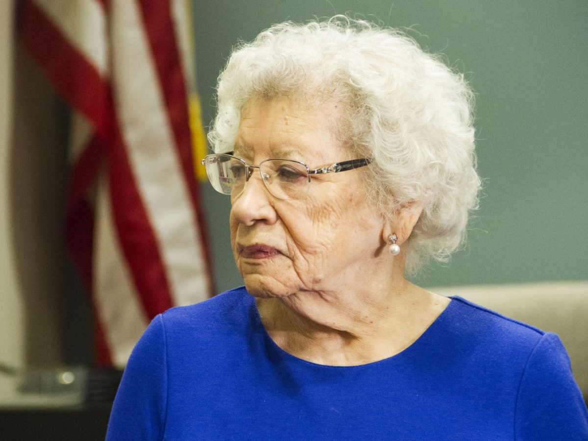 Bridgeville Mayor Betty Copeland listens to Gov. Tom Wolf.