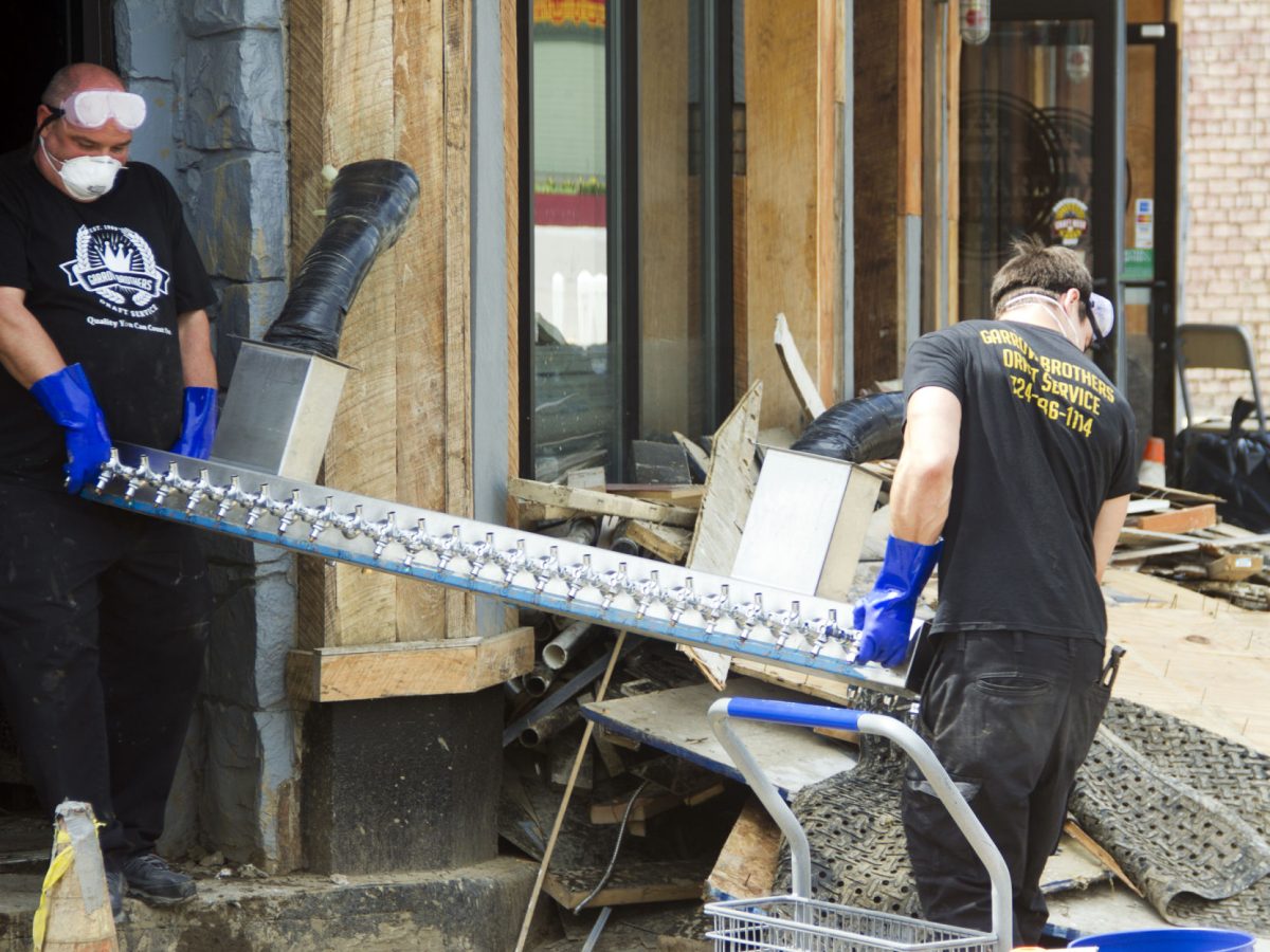 Workers remove a tap system from Railyard Grill & Tap Room in Bridgeville following the flood of June 20. The Railroad Street business since has reopened.