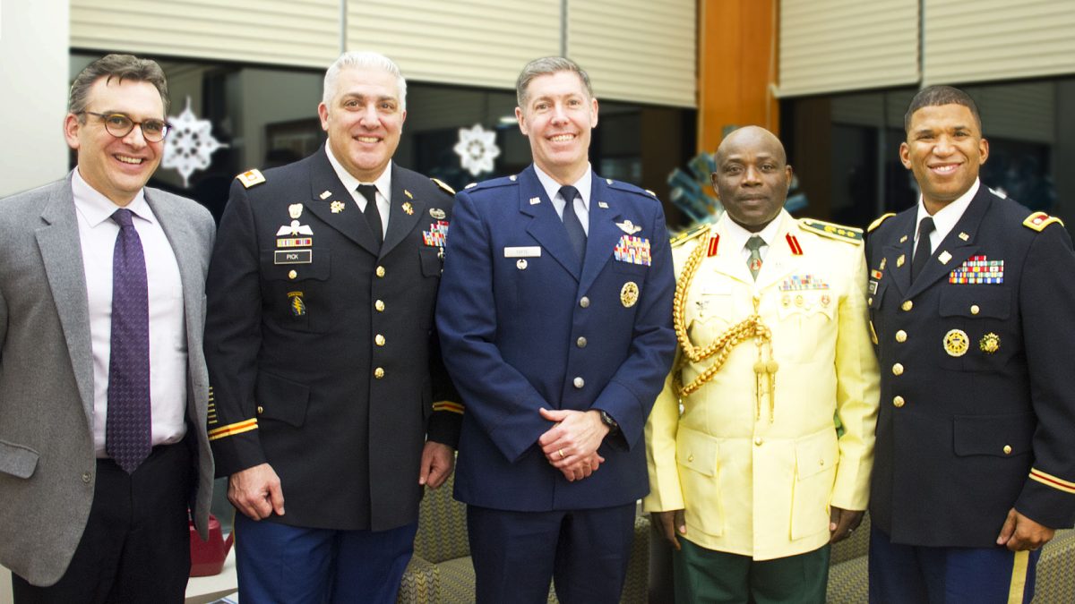 From left are Michael Neiberg, Lt. Col. Shaw Pick, Lt. Col. Steven Tofte, Col. Abdullah Haruna Ibrahim and Lt. Col. Eric McCoy.
