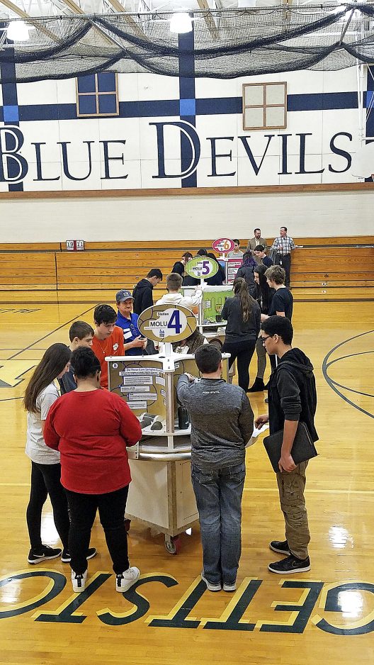 The Oilfield Energy Center brought its traveling Mobile Oilfield Learning Unit to the school to teach students about geology, engineering, physics, chemistry, history and environmental studies. The unit is made up of six learning stations to which students travel around in pairs. The Feb. 26 visit was the first time the unit has visited a school in Pennsylvania.