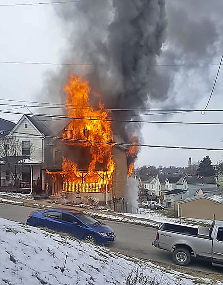 Fire Capt. Nick Blumer said the couple who lived there with their 18-year-old granddaughter had a rent-to-own agreement to acquire the two-story house. He said there were dogs inside – two free and a third in a crate.
