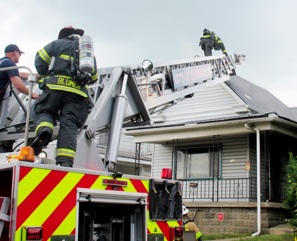 City and North Strabane Township firefighters responded to 735 Fayette St. about 2:15 p.m. after receiving a report of smoke coming from the roof and basement.