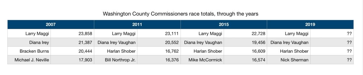 Washington County Commissioners race totals, through the years