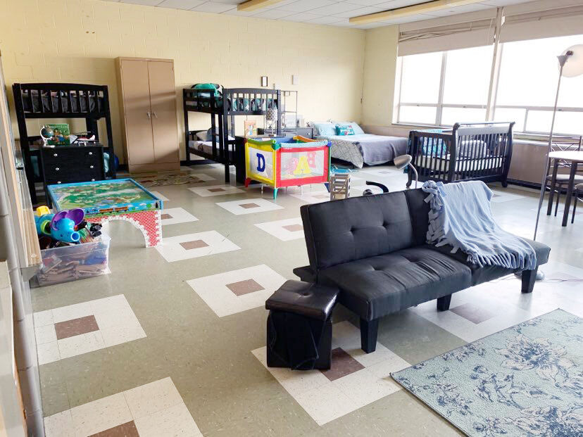 Fifteen family suites have already been set up in former classrooms, with living room, bedroom and dining areas. Those will be able to house about 80 people, she said.