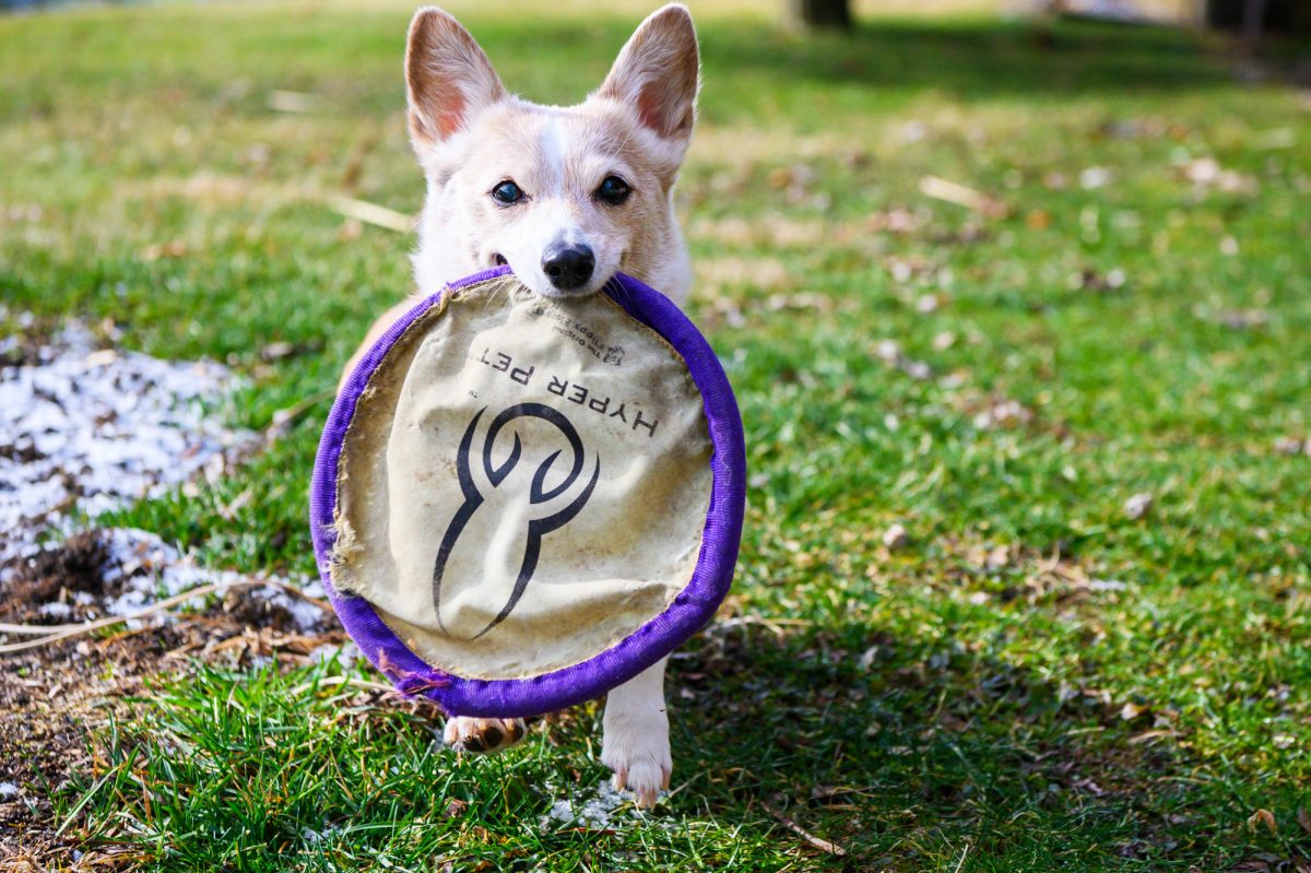 Penni Lou happily retrieves one of her favorite toys, a frisbee, last month.
