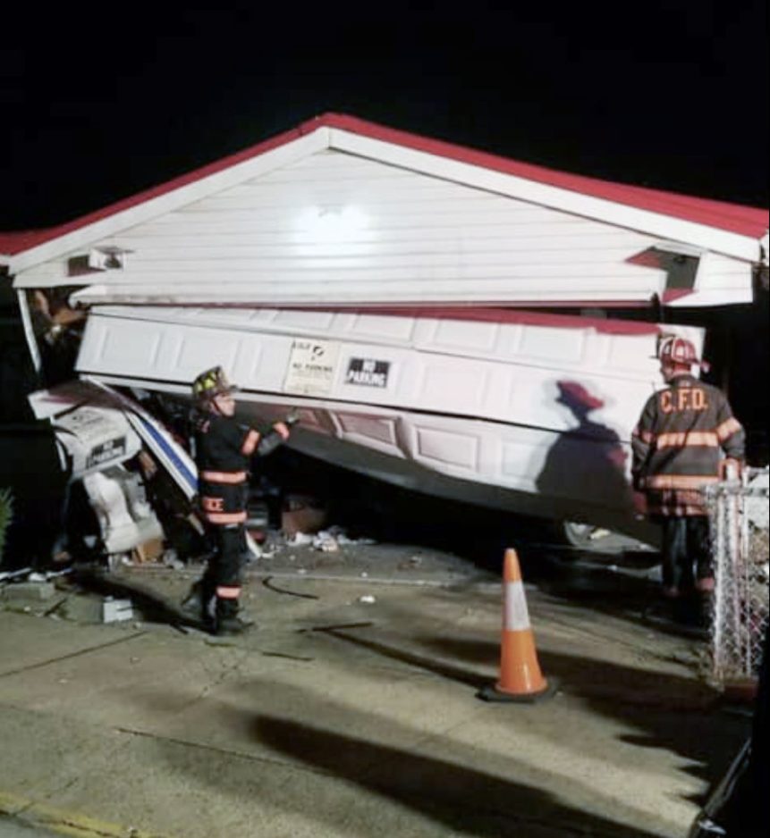 Mayhew said her car was scratched during the crash. She said her insurance company was expected Wednesday to assess the damages. She said she believed her garage can be repaired.