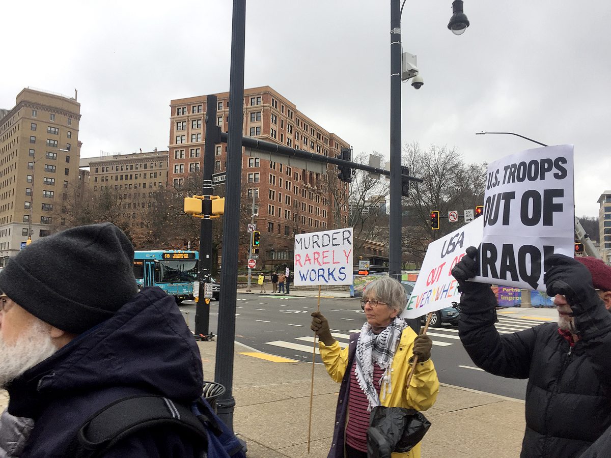 Still, two days after a U.S. drone had assassinated Iranian Gen. Qassem Suleimani in a strike at Baghdad International Airport, Santoriello at the demonstration opposed the U.S.’s military actions.