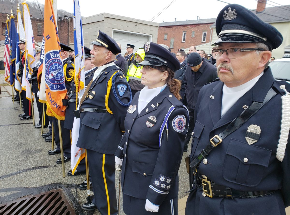 MONONGAHELA – First responders from at least four states gathered in Monongahela Friday to pay their final respects to a paramedic killed in the line of duty.