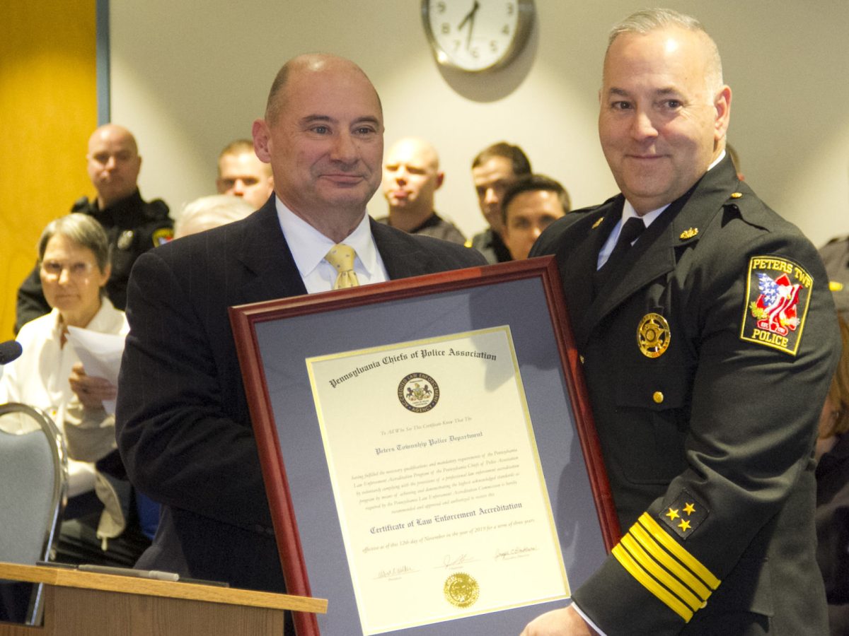 Tom Ogden, chief of police at Carnegie Mellon University, attended to acknowledge the township’s successful completion of the Pennsylvania Law Enforcement Accreditation Program.