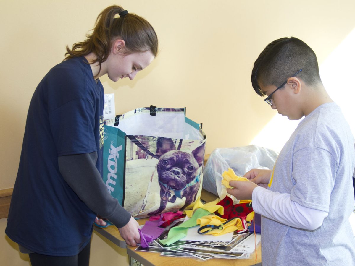 The students took part in activities that included making toys for cats and pet rabbits, constructing “snuffle mats” for dogs to sniff and search for hidden treats, creating valentines for veterans and preparing blankets for distribution to the needy.