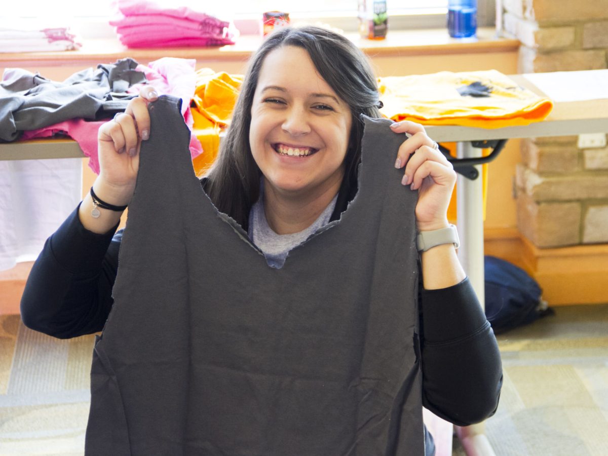 Another project involved making bags out of old T-shirt that were sitting around the recreation center or that employees donated, an idea Sekanic brought to the day of service.