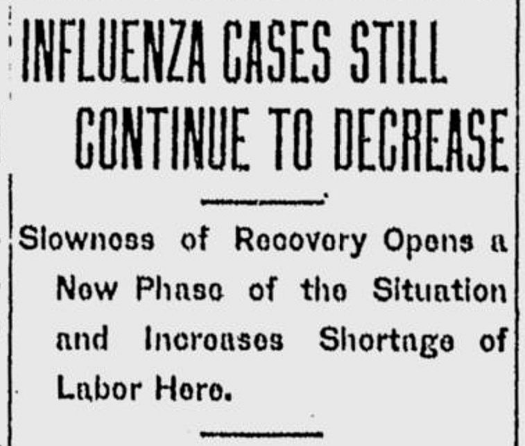 The great pandemic of 1918 wears on in region