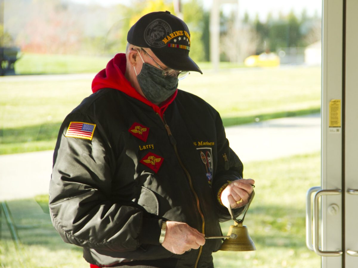 Larry Bresselsmith of Nottingham Township rings a bell in memory of each veteran being honored.