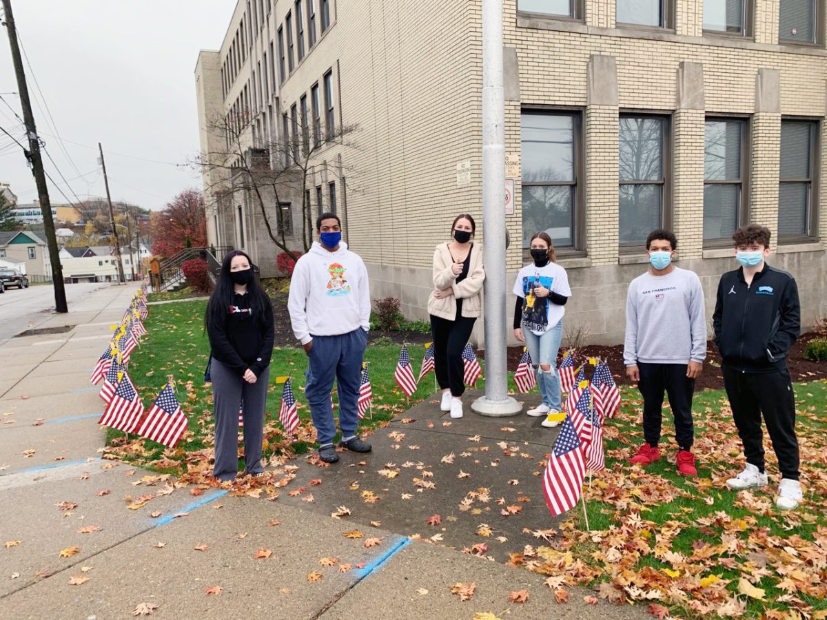 Every Veterans Day for the past 10 years, Washington High School has held a special community program to honor and remember area veterans for their service. This year, however, COVID-19 forced the cancellation of the special assembly and program, but students still found a way through the social studies department to honor veterans. American flags were sold to students, faculty and staff who wished to recognize a friend or relative who served in the military. Students sold 103 flags and raised $400, which will be donated to the Wounded Warrior Project. Students placed the flags around the high school on Allison Avenue and across from the district’s central office, down Hallam Avenue, for Veterans Day. The flags will then be given to their buyers with the recognition tag attached. Teachers and students look forward to resuming the traditional Veterans Day program next year, but the alternative this year proved to be a lesson in thanks and sharing through the flag project.