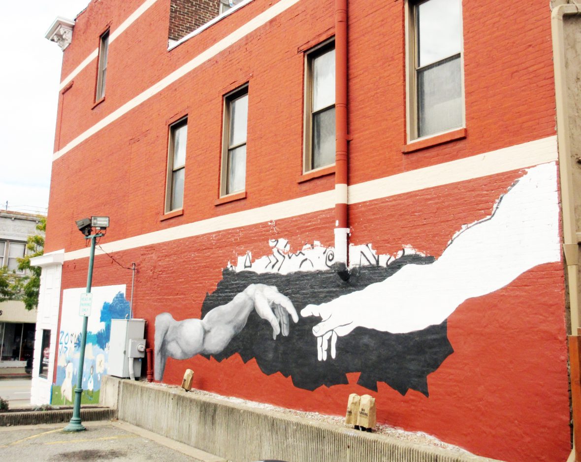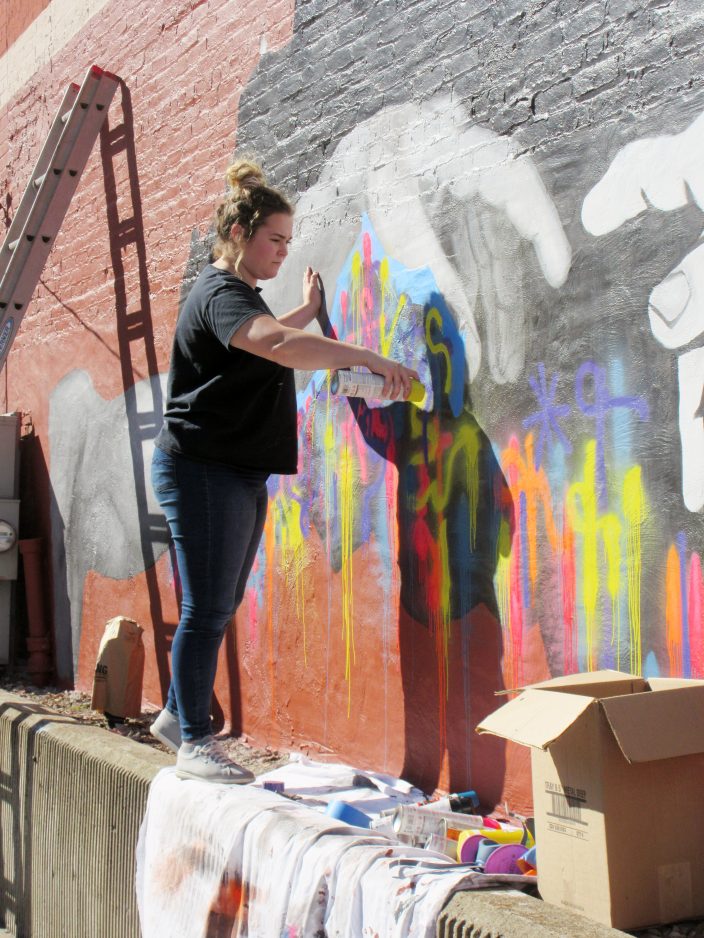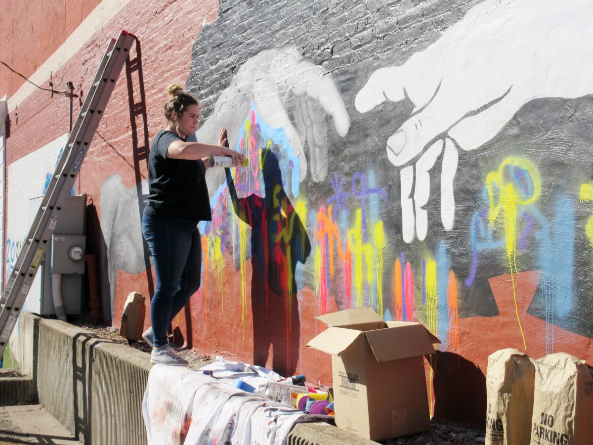 Menhart is painting a “pop-art take” on the arms in Michelangelo’s “The Creation of Adam.” None of the murals are complete yet, but Menhart’s vision is for two connecting black and white arms with neon colors in the background. She’s painted the arms before, and when she ran the idea past Kennison and Ashmore, they approved it.