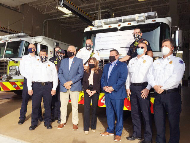 Money made available to Washington County government through the federal Coronavirus Aid, Relief and Economic Security Act will be distributed to fire departments with paid personnel who apply for it, and members of the Washington County Board of Commissioners gathered in North Strabane Township to note $406,181 is available.