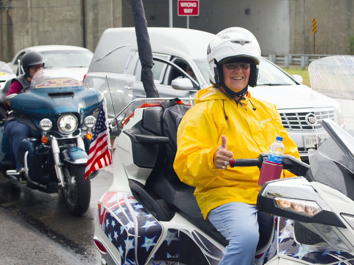 Serving as ride captains from her state for the honor mission were Wheeling residents Susan Whitlatch, assistant state captain, and her husband, Michael, a U.S. Army veteran of Operation Desert Storm. Susan’s father, Francis Poskey, was a Seabee aboard the USS Ranger during World War II.