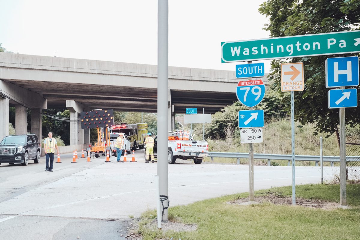 A water main break Friday morning led to the shutdown and partial collapse of Weavertown Road in Canonsburg, according to North Strabane Township Police Department Sgt. Matthew Mancini. Police received a call about flooding at 9:40 a.m., Mancini said. Water flowed down Weavertown Road and collected near the entrance to the Interstate 79 on-ramp before crews arrived to stop the flooding. Pennsylvania American Water crews worked to fix the break.