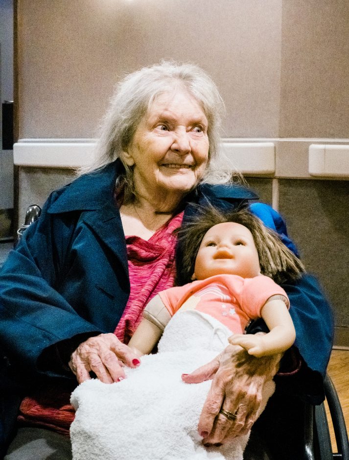 “I saw it in my grandmother, and I’ve seen in patients with Alzheimer’s or dementia that holding a baby doll can help decrease stress and agitation that they often experience,” DeGusipe said. “Doll therapy, holding those baby dolls, is a way to put responsibility and structure back into their lives. It gives them something to care for, and it helps to cheer patients who have depression.”
