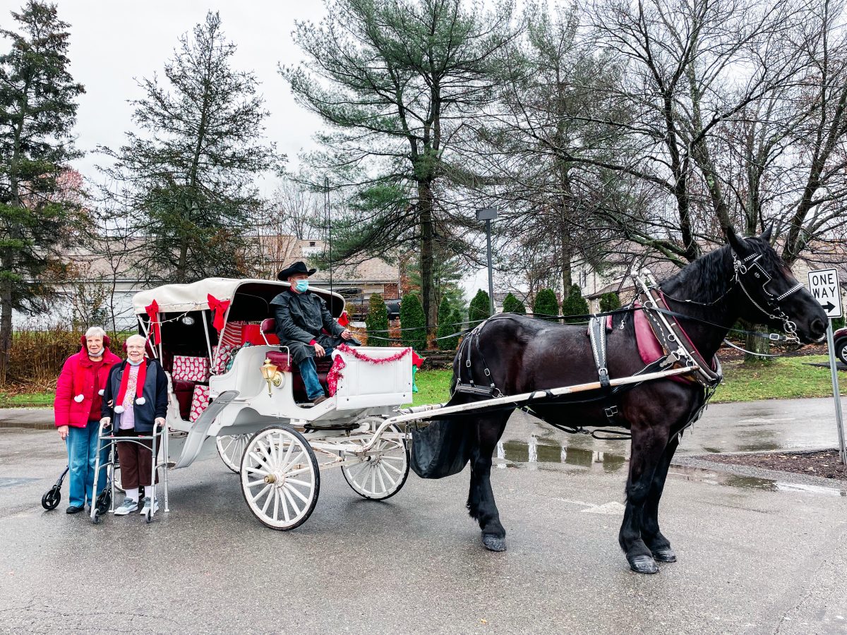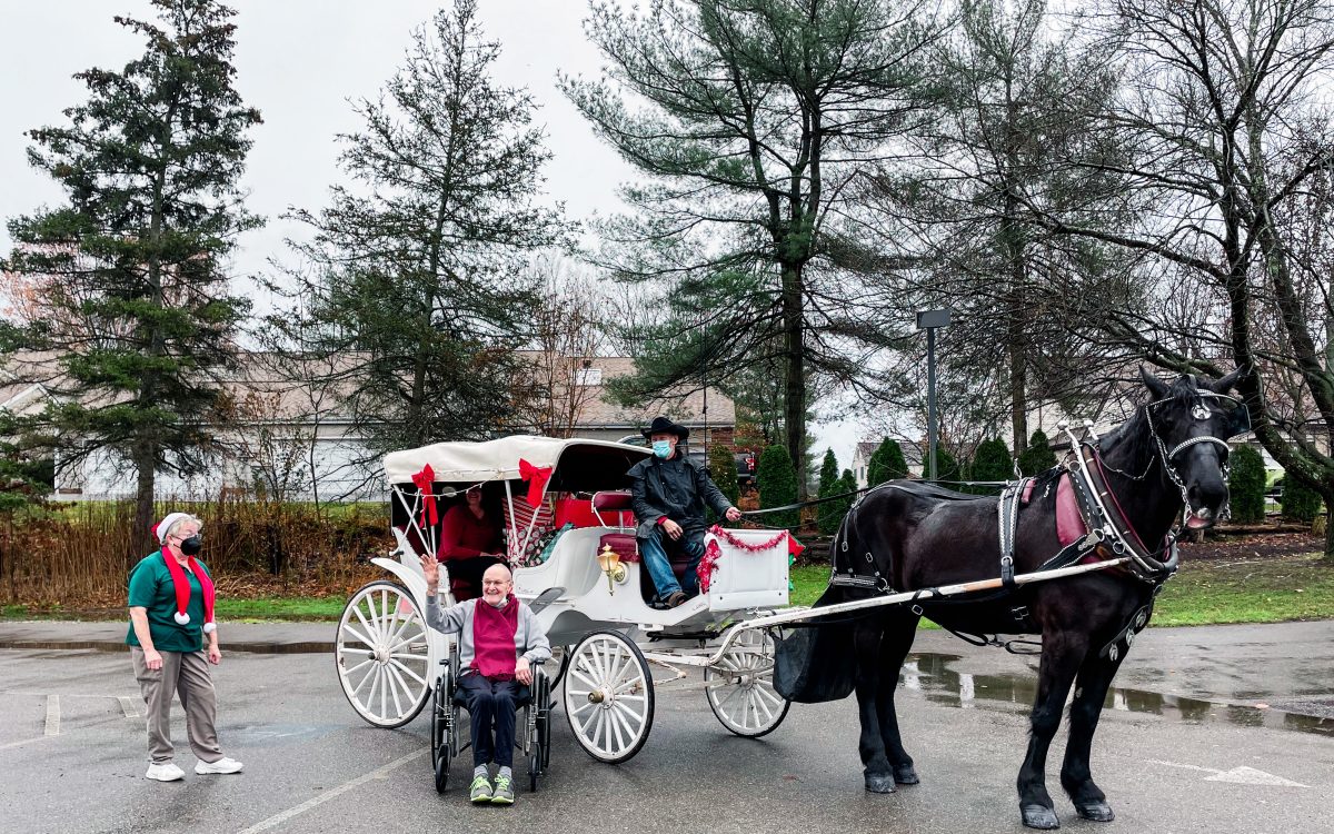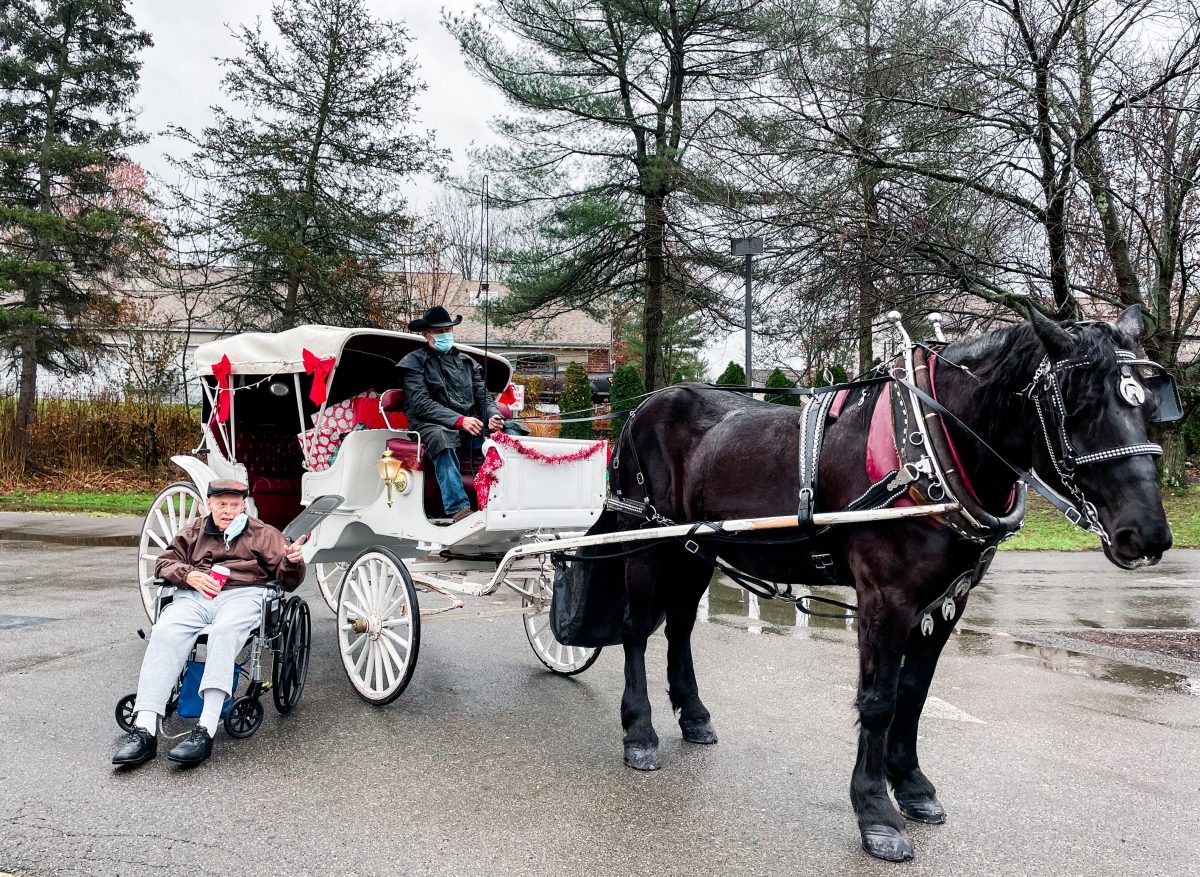On Monday, DeGusipe, of Uniontown, Fayette County, kicked off her Christmas baby doll distribution, arriving via horse and carriage to drop off babies to residents at McMurray Hills Manor in McMurray.