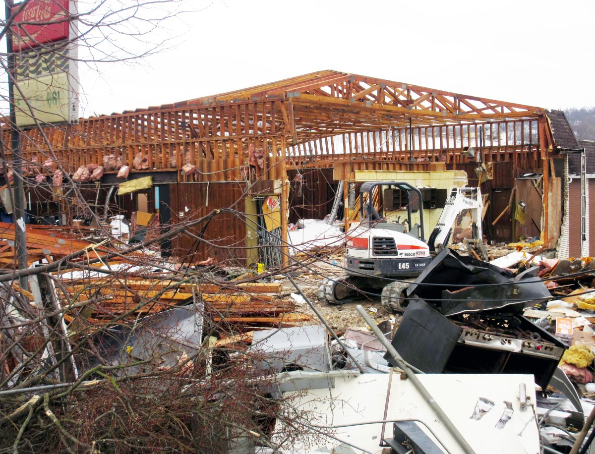 Demolition began this week on the former Fraternal Order of Eagles Lodge at 122 N. Central Ave., Canonsburg. The borough had purchased the unused building last year. Borough council decided to demolish the building and use the lot for public parking.
